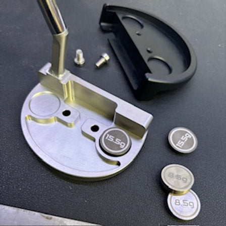 Note: depending on the neck style you choose, weight will vary. Example - standard plumbers neck with no added weights is ~335g. If both tungsten weights are added, it ends up at ~365g. There is also room in the sole plate to add lead tape should you want increase even more.
