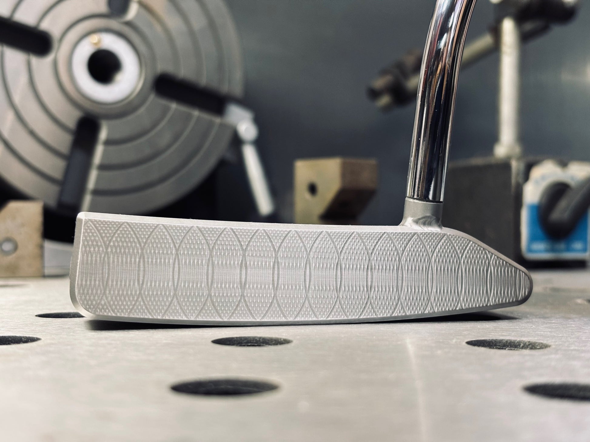 332g head weight, 3* loft, 40* toe hang, satin finish with overlap milling. Assembled with a stepless chrome KBS CT Tour single bend shaft.