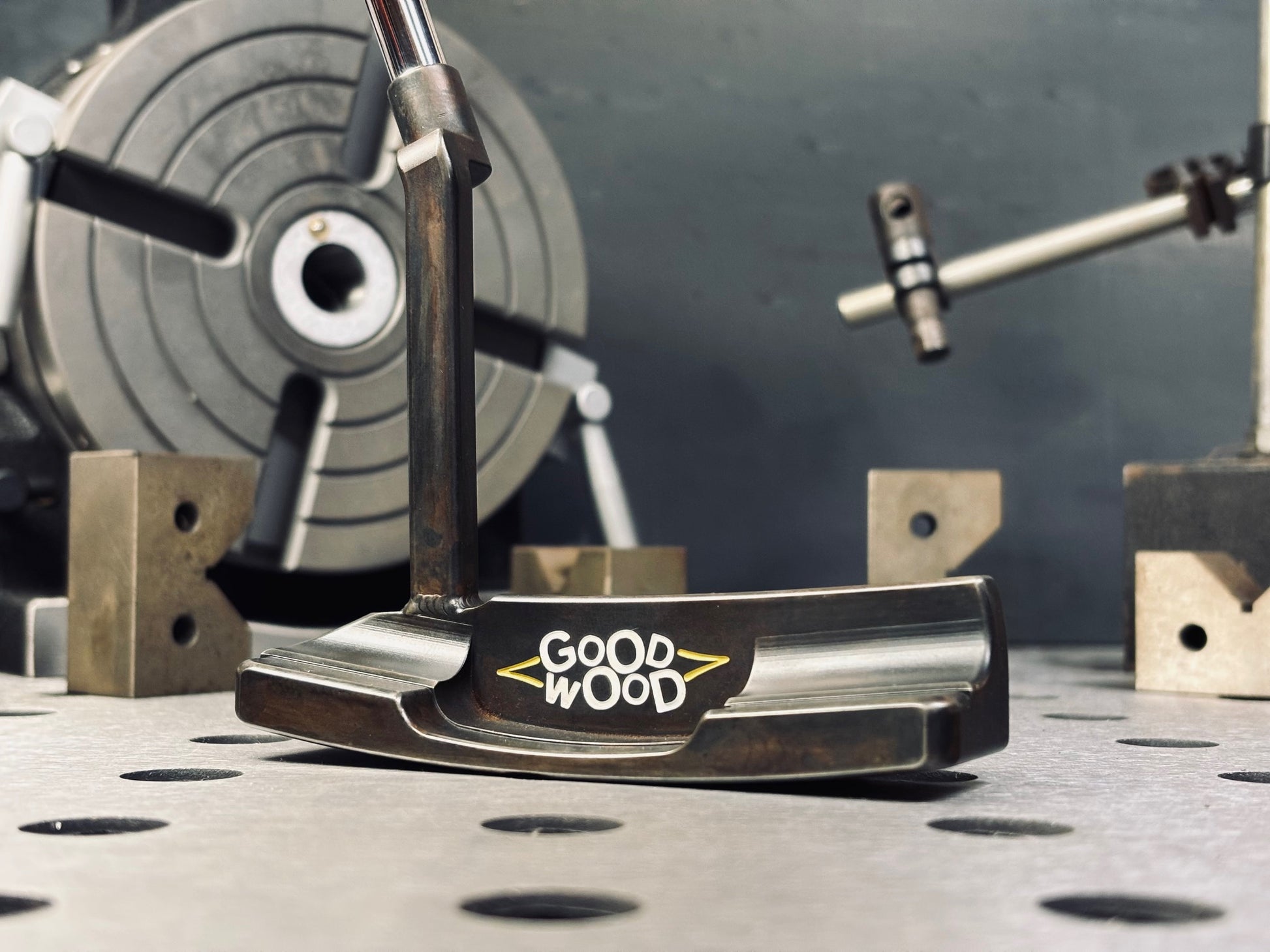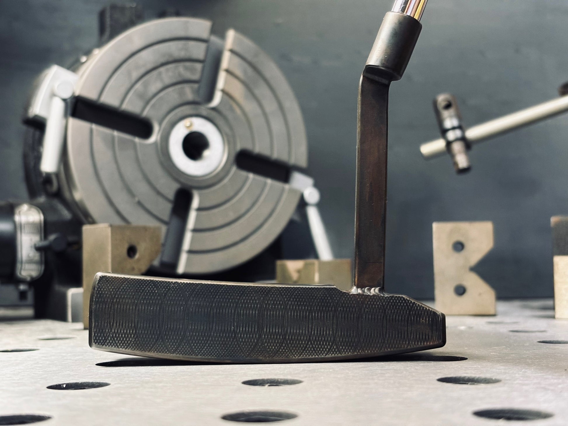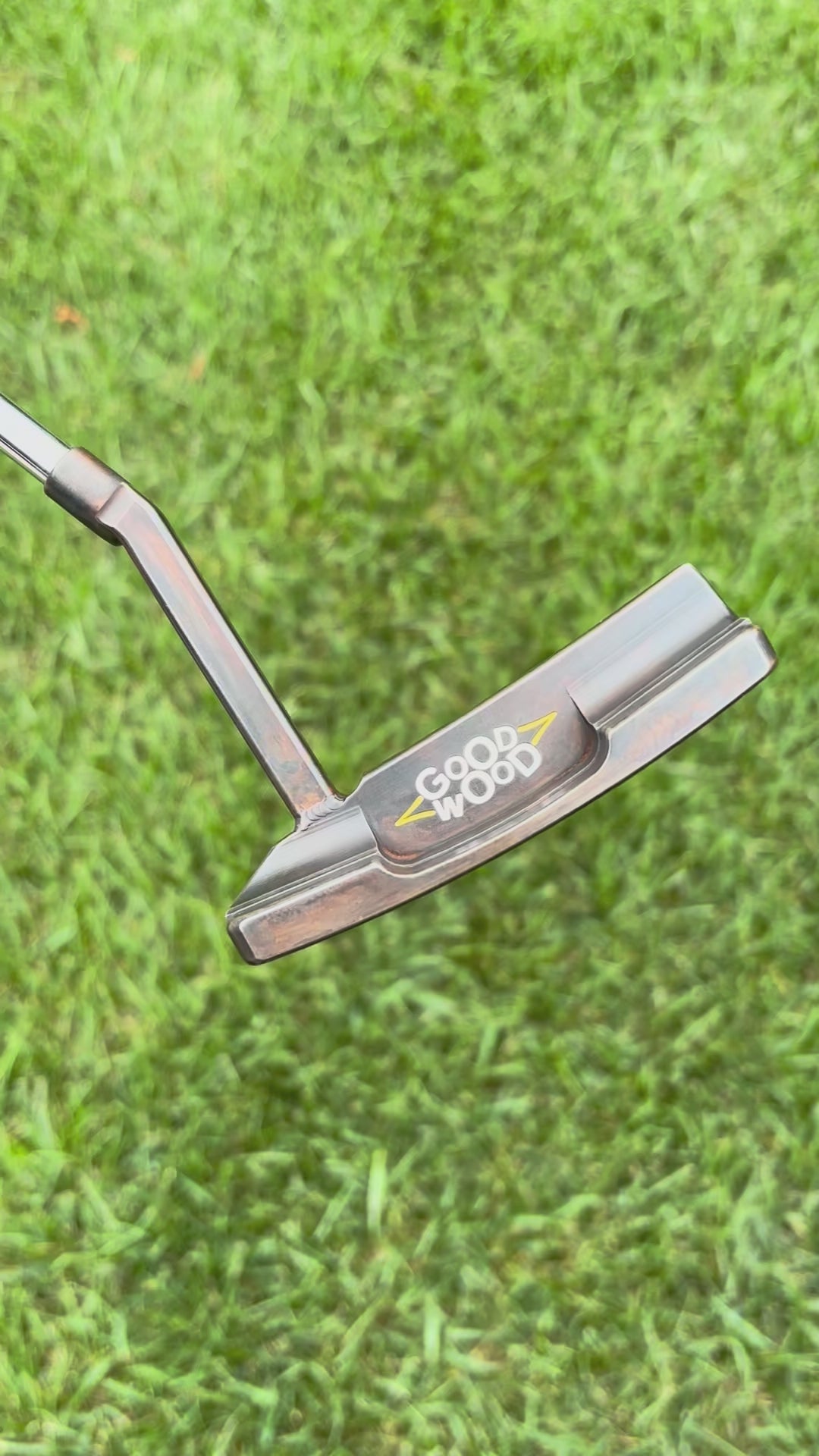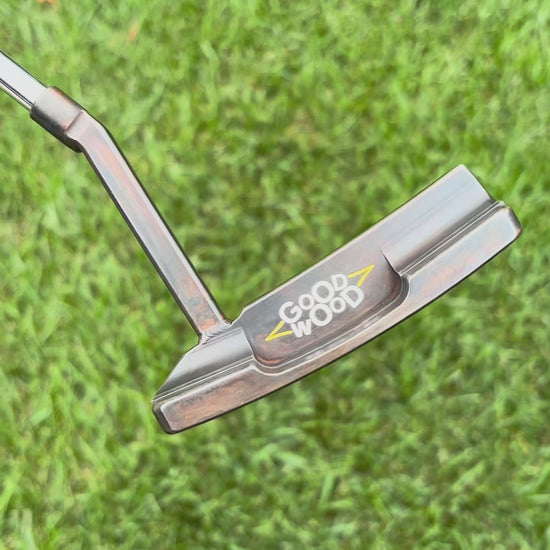 345g head weight, 3* loft, 20* toe hang, black/brown patina finish with overlap face milling, assembled with a stepless chrome KBS CT Tour shaft.